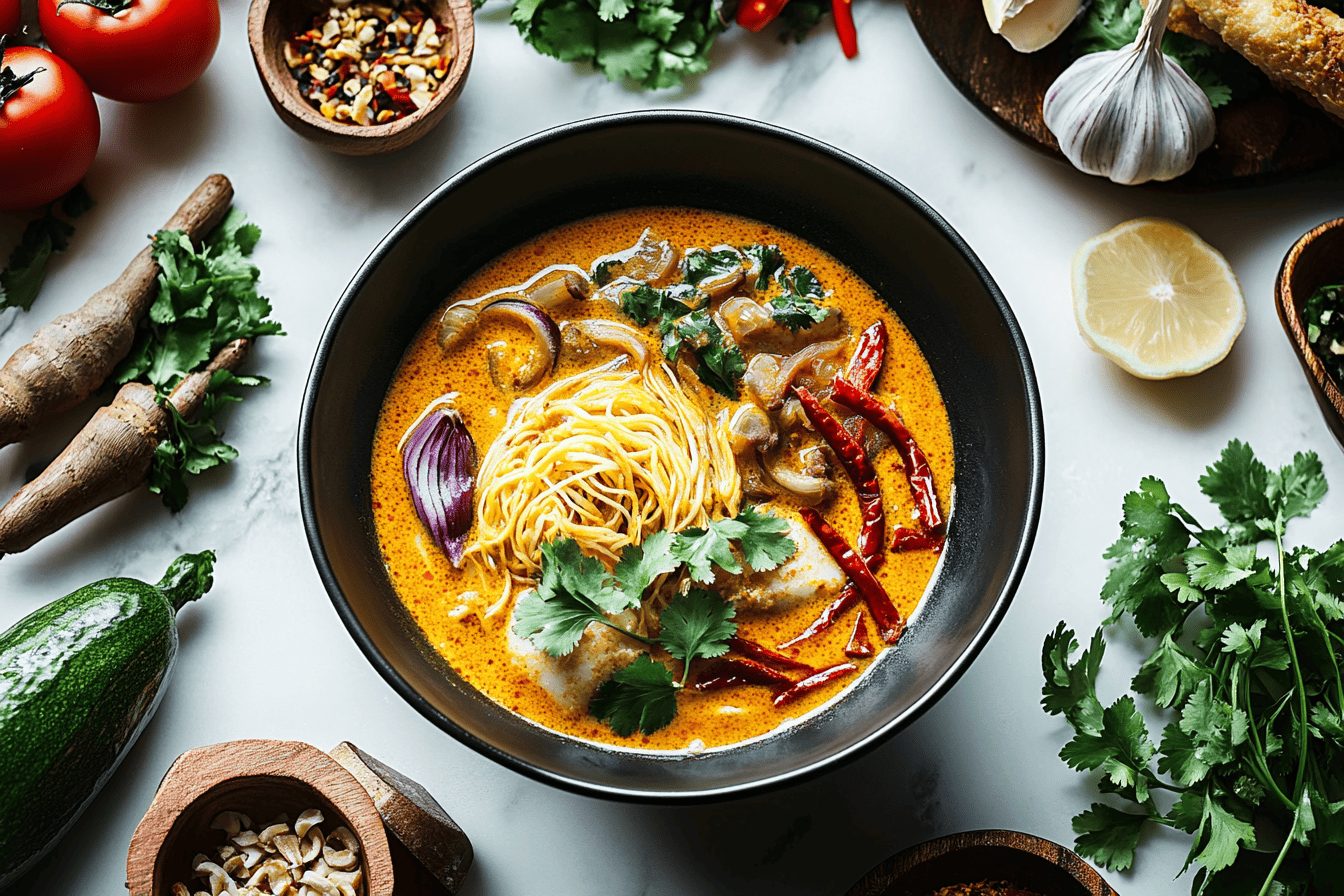 To recreate the magic of Khao Soi Curry Chiang Mai noodles in your own kitchen, you’ll need to gather a few key ingredients that form the backbone of this flavorful dish: