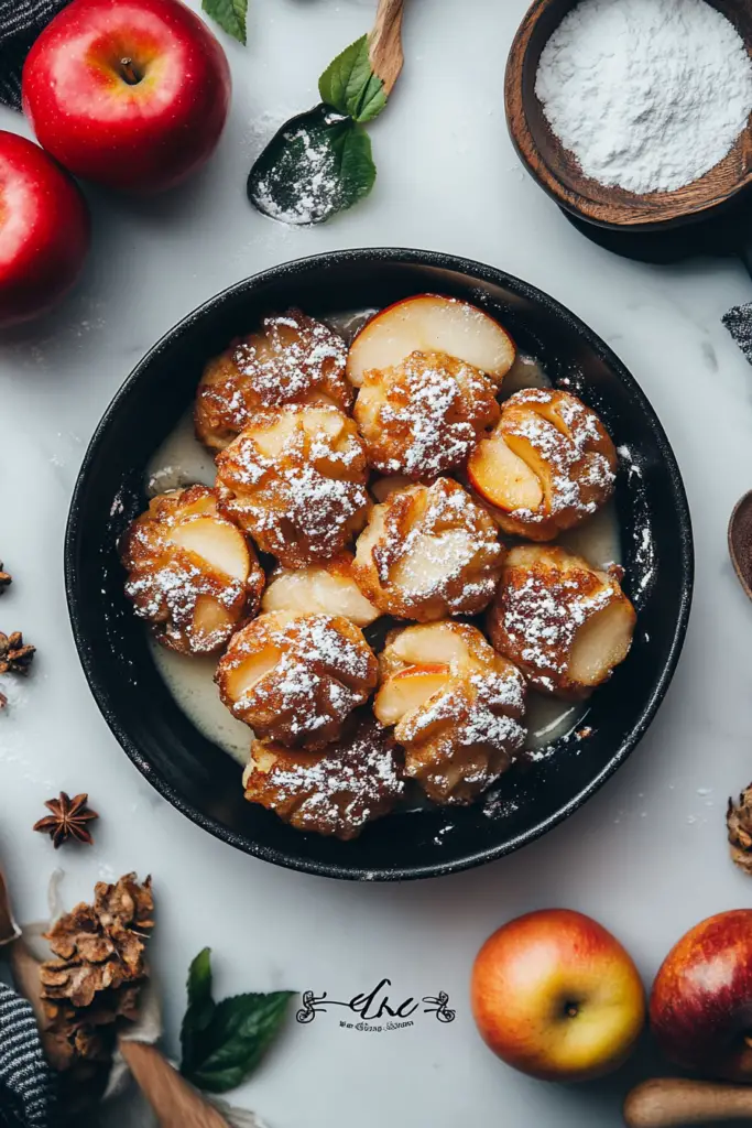 - STEP 10: Just before serving, dust the baked apple fritters generously with powdered sugar. This final touch adds a hint of sweetness and a beautiful presentation to the fritters.