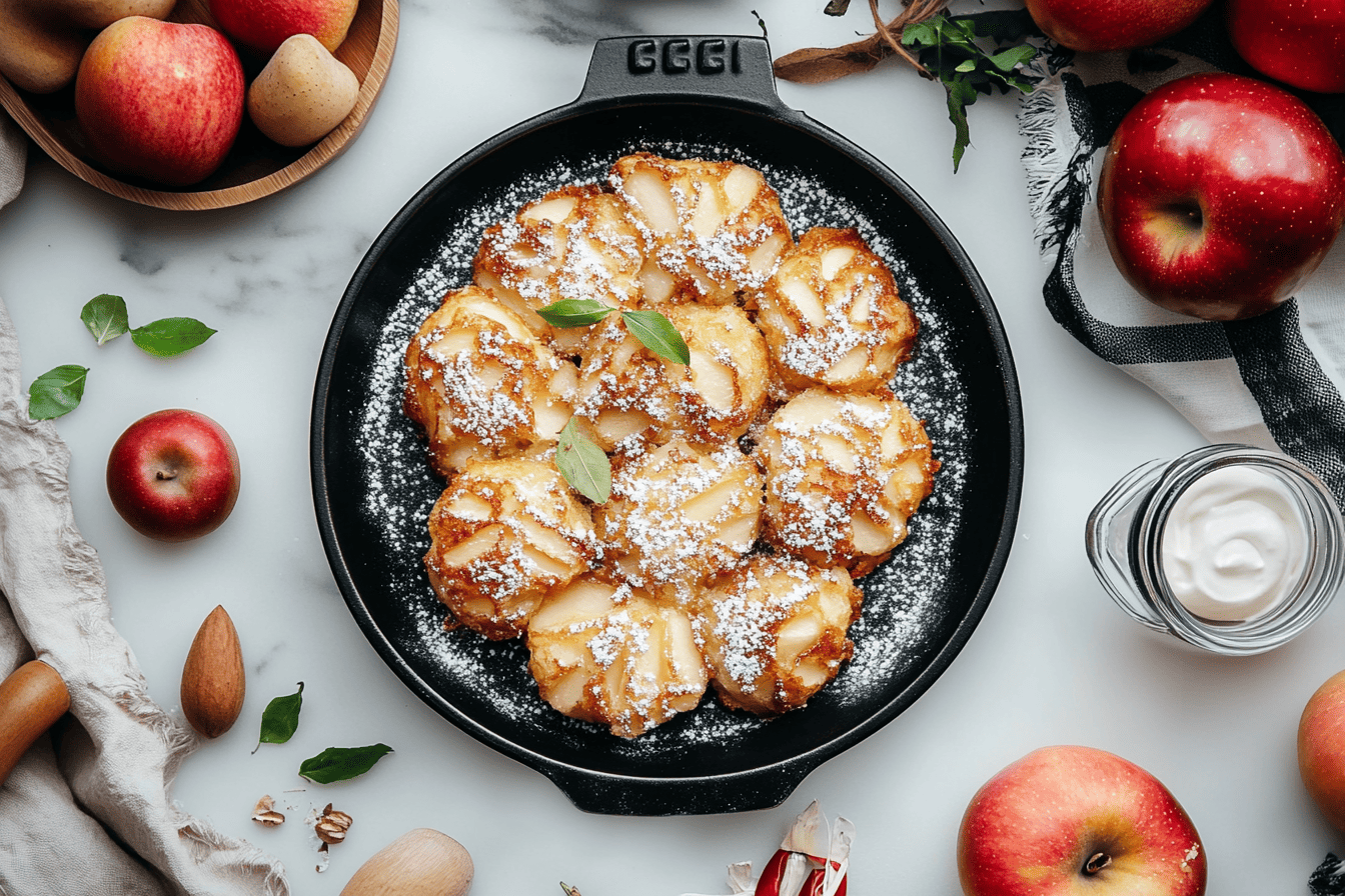 Golden and crispy on the outside, with a warm, cinnamon-spiced apple filling inside. These baked apple fritters are a delightful combination of sweet apples, aromatic spices, and a tender dough. A perfect treat to enjoy any time of day!