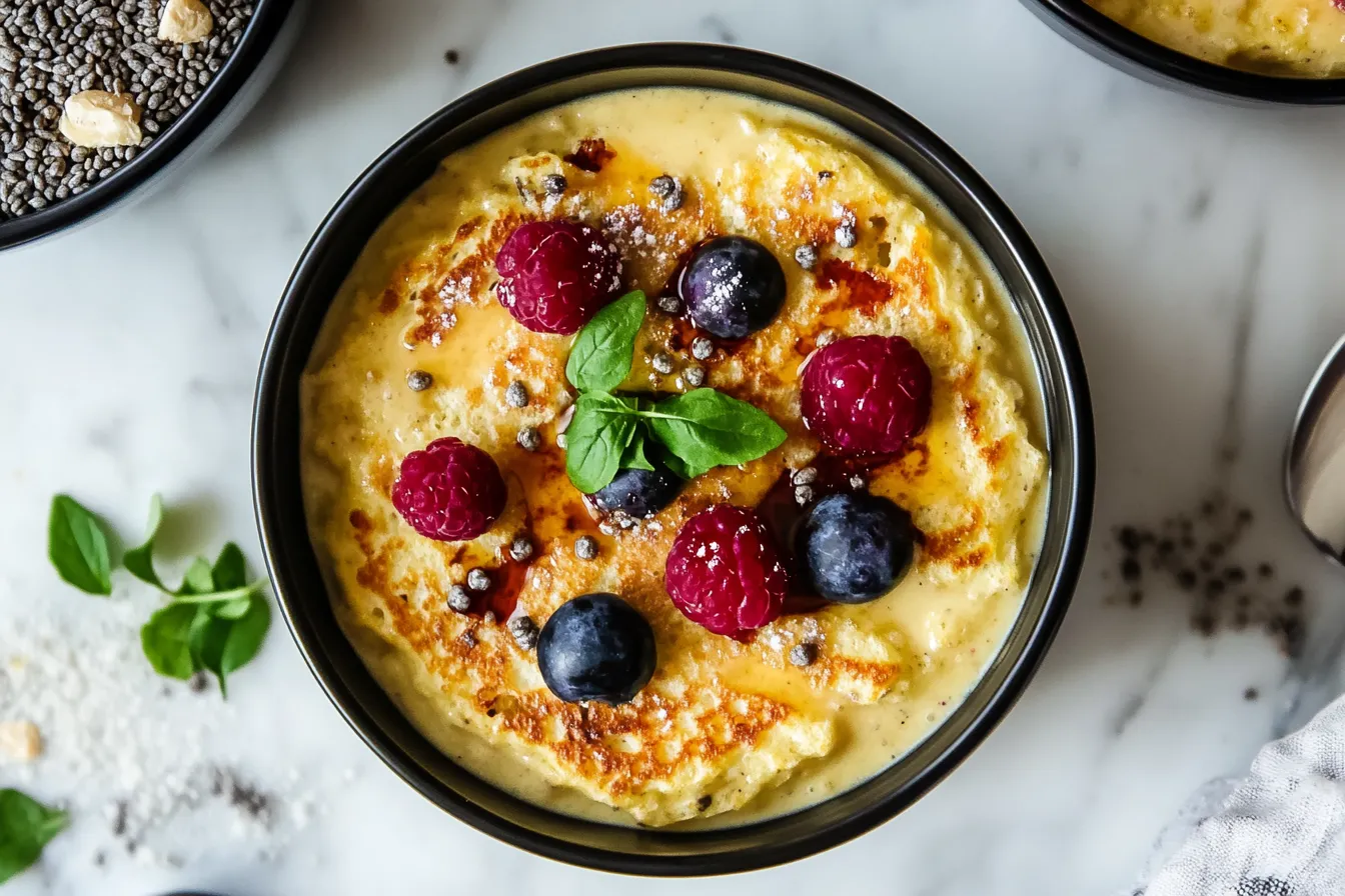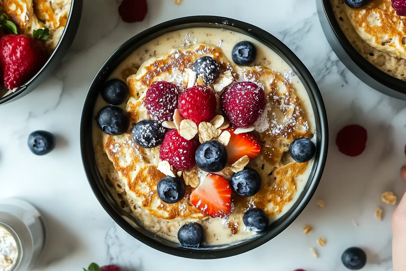The moment you pull these baked protein pancake bowls out of the oven, you’re greeted with a golden, slightly crispy edge and a soft, fluffy interior that’s just begging to be topped with your favorite goodies. The smell of vanilla and warm batter fills the kitchen, making it hard to wait, but trust me, it’s worth it! The protein-packed base is hearty enough to keep you satisfied, but light enough not to weigh you down. Each bite gives you a perfect balance of texture—slightly crisp on the outside, with a melt-in-your-mouth softness on the inside.