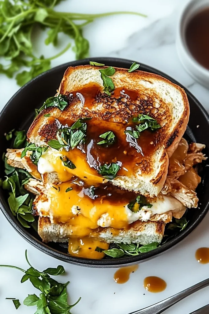 The combination of smoky BBQ chicken and gooey melted cheese is truly a match made in heaven. When grilled between two slices of perfectly buttered bread, every bite offers a satisfying crunch followed by a rich, savory explosion of flavors. The sweetness of the BBQ sauce balances beautifully with the slight tang from the chicken, while the cheese pulls everything together, melting into that creamy goodness that coats your taste buds. The edges of the bread become crispy and golden, and the warmth of the sandwich envelops you like a cozy hug, making it the ultimate comfort food. Whether you’re making this for a casual lunch or as a fun weeknight dinner, each bite is an invitation to savor the simple joys of life.