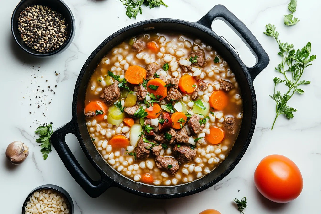 The key to making this stew truly unforgettable is giving it time to develop those flavors. You’ll notice how each ingredient, as it simmers, gets a chance to infuse the broth with its essence. The beef, rich in its own juices, releases all that savory goodness into the broth, making it the heart of the dish. As the barley cooks, it soaks up all that delicious flavor, becoming plump and tender. The beauty of this dish is that the longer it sits, the better it tastes. So, if you have time, let it rest for a while before serving—it only gets more irresistible.