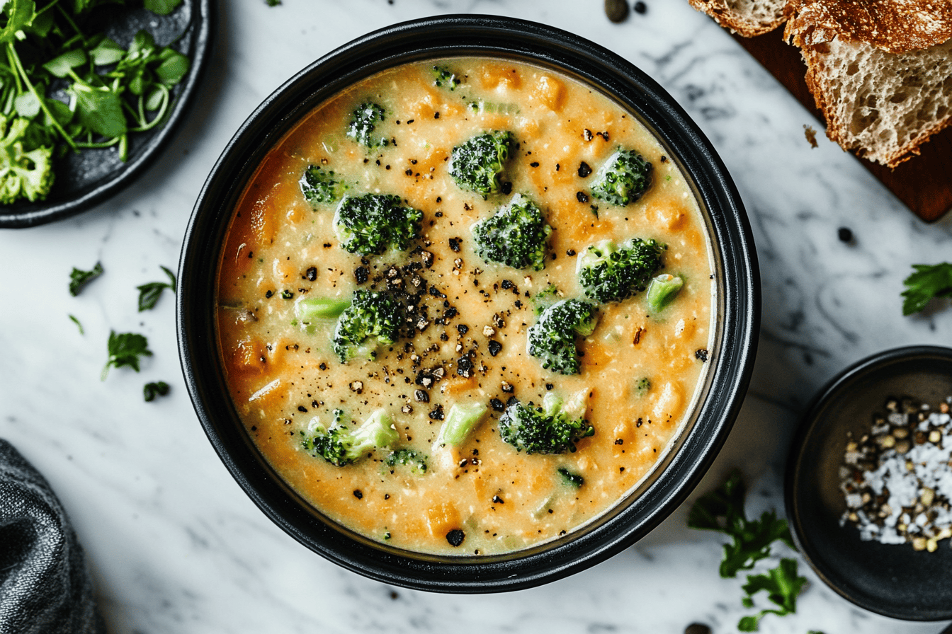 Velvety smooth cheddar broccoli soup, a harmony of rich cheddar cheese, tender broccoli florets, and aromatic spices. A comforting bowl of goodness that will warm your soul with each spoonful.