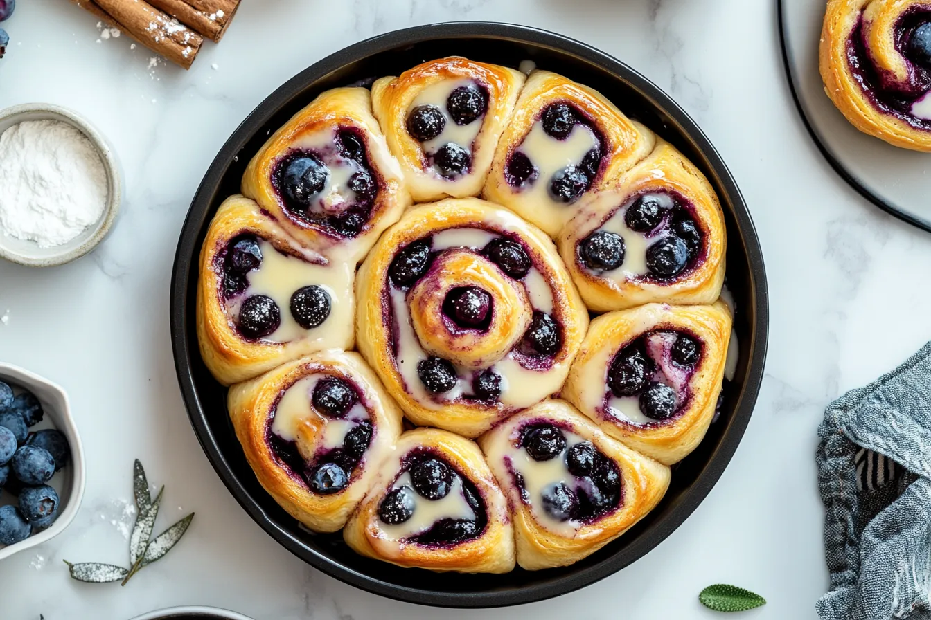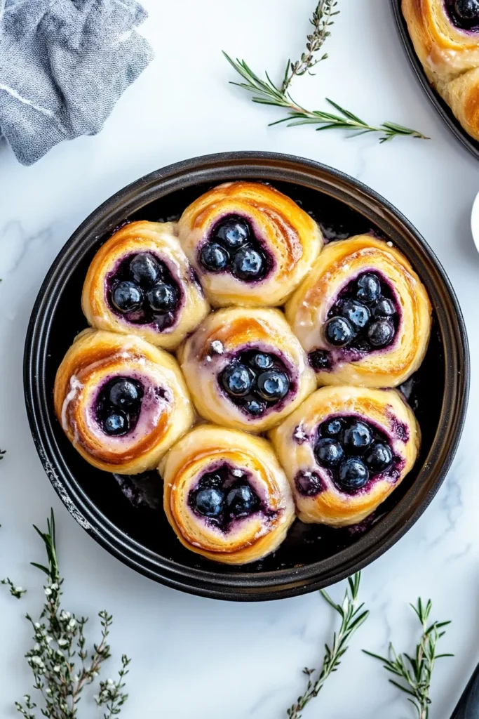 Soft, pillowy cinnamon rolls swirl with sweet blueberries, creating the perfect balance of warm spice and fruity freshness. Topped with a creamy glaze, each bite melts in your mouth, offering a comforting, irresistible treat you’ll crave again and again.
