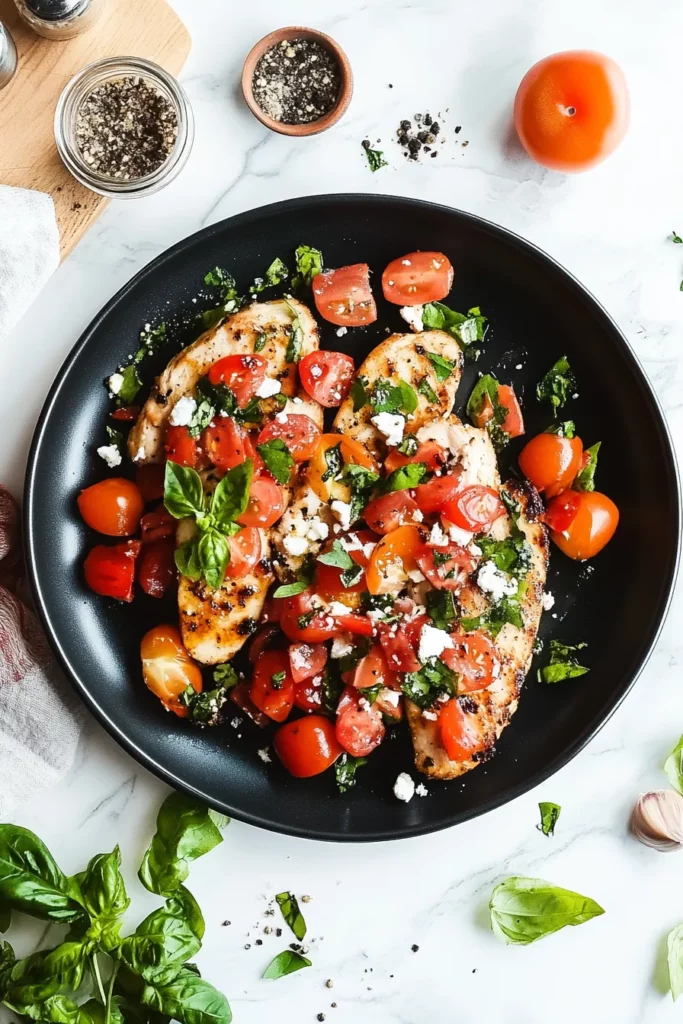 The crispy, golden edges of the chicken paired with the bright, juicy burst of the tomato topping—it’s like a symphony of flavors dancing on your taste buds! As you take that first bite, the savory richness of the chicken is beautifully balanced by the fresh, zesty tomatoes, basil, and a hint of balsamic glaze that just pulls everything together. There’s a bit of crunch, a touch of sweetness, and a depth of flavor that comes from the garlic and the olive oil—each bite feels like a little celebration. If you’re anything like me, you’ll find yourself wanting to scoop up every last bit of that tomato mixture with a crispy piece of bread or maybe even a spoon!