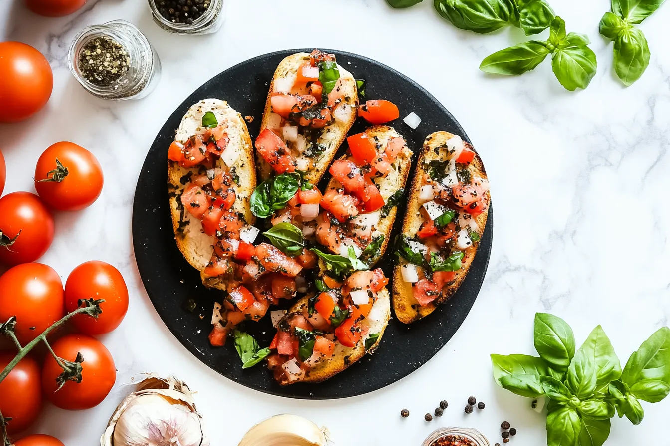 You can’t go wrong with some crunchy, toasted bread on the side. Use a hearty baguette or ciabatta—something that can hold up to the juicy tomato topping. Trust me, you’ll want to have a piece on hand to scoop up every last bit of that delicious mixture! If you’re feeling fancy, rub the bread with a little garlic and drizzle with olive oil before toasting it for an extra pop of flavor.