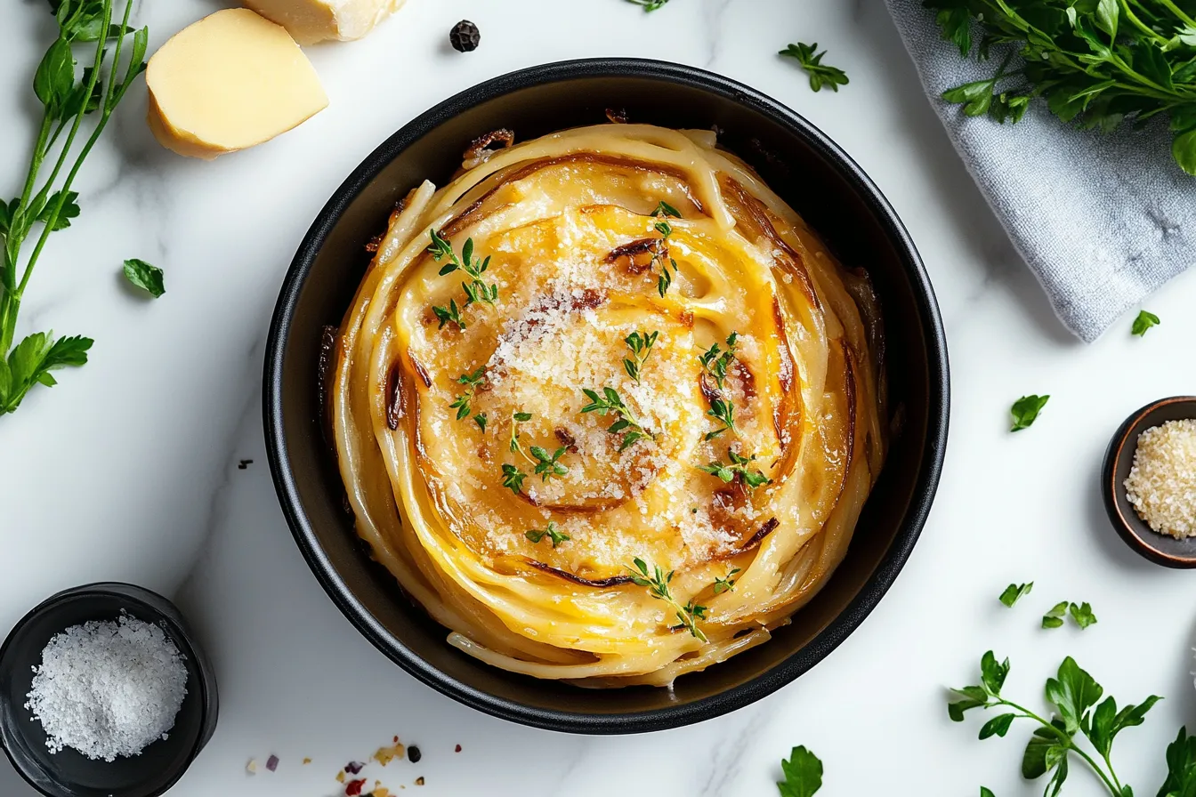 Once the onions are perfectly caramelized, there’s a certain satisfaction in tossing them with the pasta, watching the strands glide through the glossy sauce. The combination of sweet and savory hits every taste bud, and the creamy texture of the sauce adds a comforting richness that lingers. It’s a balance of flavors that feels both elegant and homey at the same time, making each bite something special. I find myself going back for seconds (okay, maybe thirds) just to savor that perfect harmony of caramelized goodness wrapped around every bite. This dish isn’t just about the onions; it’s about creating something that feels like a warm hug from the inside out.
