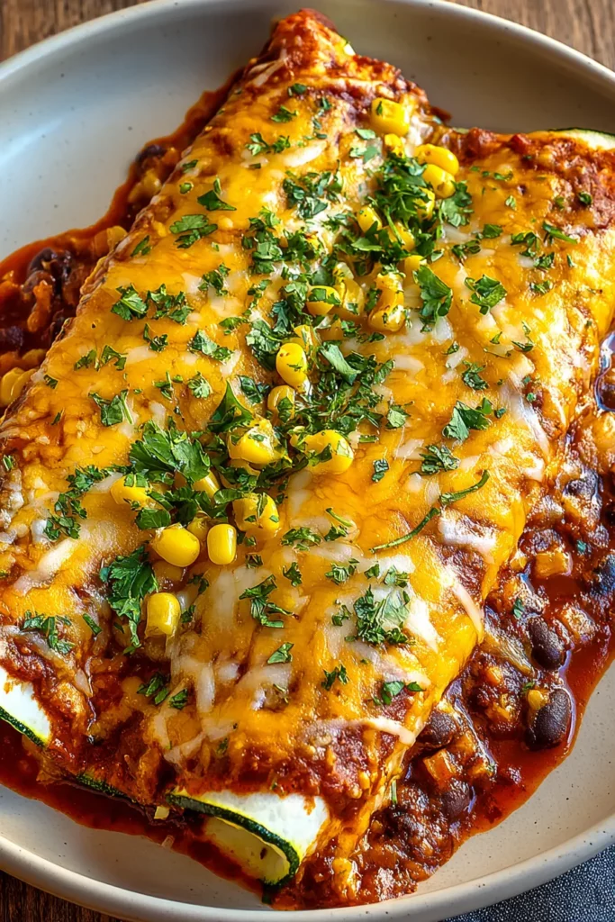 What started as a simple idea—swapping tortillas for zucchini—has blossomed into a vibrant, health-forward spin on classic enchiladas that’s sure to become a staple in your recipe collection. Throughout this article, we’ve walked through every step, from selecting ingredients to serving suggestions, ensuring you feel confident tackling this intermediate-level dish. The total cook time is under an hour, and with just 350 calories per serving, it hits the sweet spot between comfort and nutrition. These enchiladas are perfect for lunch or dinner, vegetarian gatherings, or simply when you want a cozy meal that doesn’t skimp on flavor. You can print this article and save it for later reference in your own recipe binder, and you’ll also find a FAQ below to answer any additional questions you might have about ingredients, substitutions, or cooking techniques.