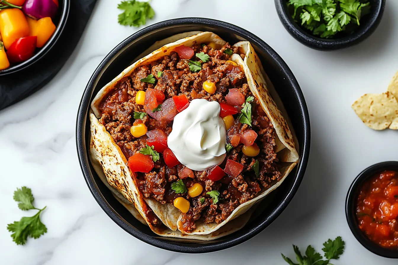 In a large skillet, heat a drizzle of olive oil over medium heat. Add 1 pound of ground beef, breaking it up with a spoon. Cook until browned and fully cooked through, about 7-10 minutes. Drain any excess fat, then season with 1 tablespoon chili powder, 1 teaspoon cumin, 1 teaspoon garlic powder, 1 teaspoon paprika, and salt and pepper to taste. Stir well to combine the spices and let the beef simmer for a couple of minutes, allowing the flavors to meld. - Step 2: Prepare the Salsa