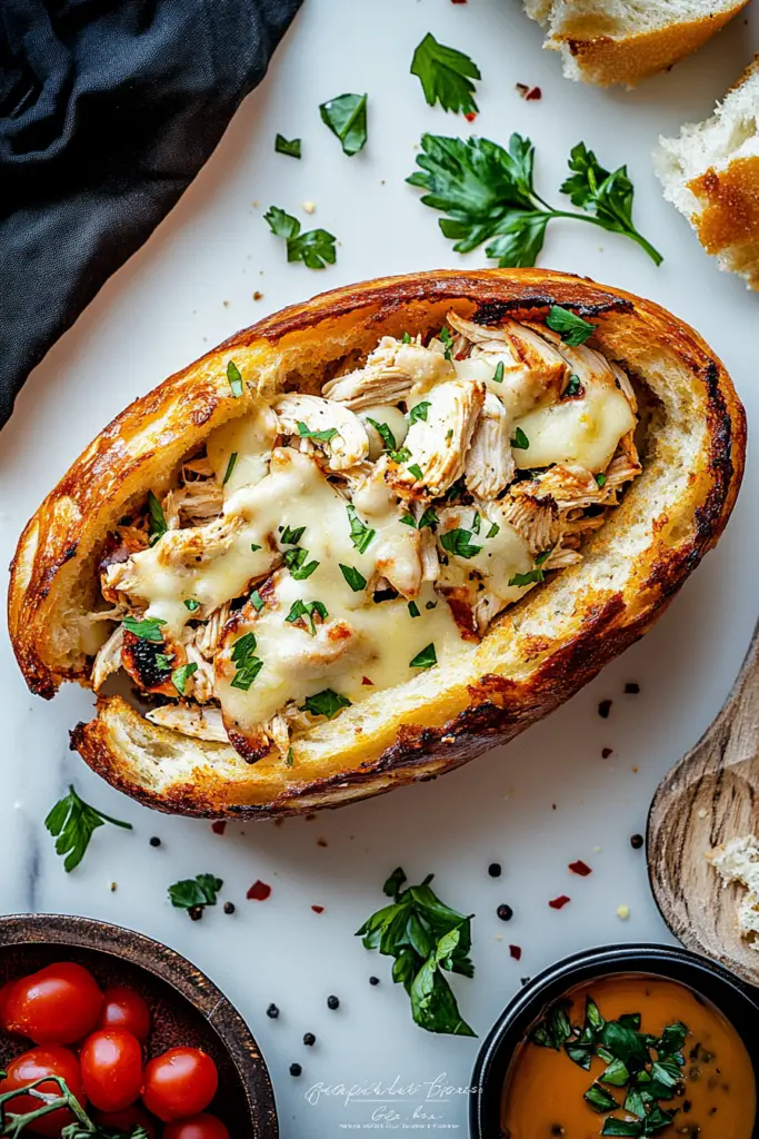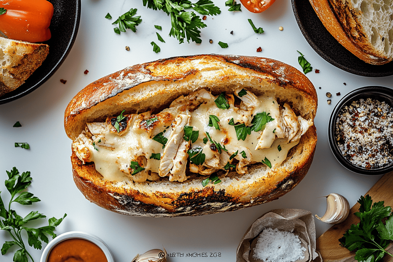 - Garnish with Fresh Herbs and Red Pepper Flakes: Add a finishing touch to your Cheesy Chicken Garlic Bread Sandwiches by garnishing them with a sprinkle of fresh herbs and red pepper flakes. Chopped parsley, basil, or oregano will enhance the herbaceous notes of the sandwich, while a dash of red pepper flakes will bring a subtle heat that elevates the overall flavor profile. These simple garnishes not only add visual appeal but also a pop of flavor that will leave your taste buds singing.