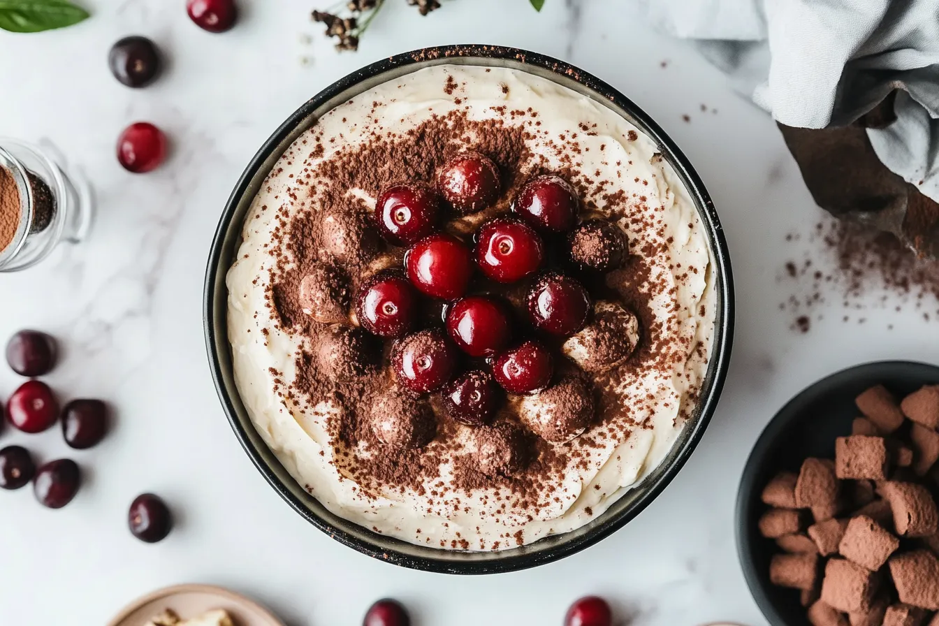 And, oh, the aroma! The warmth of the amaretto mixed with the slight tartness of fresh cherries as it soaks into the ladyfingers—it’s absolutely intoxicating. You’ll find yourself savoring the aroma as much as the taste, which is a rare gift in a dessert. I love how each bite seems to surprise you with a little more depth and complexity than the last. It’s one of those dishes that gets better with every bite, making it impossible not to share with friends and family (or at least, that’s what I tell myself to avoid finishing the whole dish in one sitting!).
