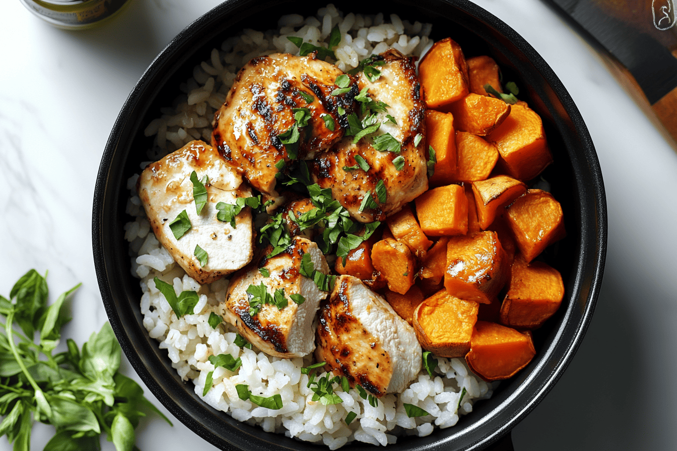 Savor the perfect blend of tender, juicy chicken, caramelized sweet potatoes, and fluffy rice in this delectable Chicken and Sweet Potato Rice Bowl. A harmonious combination of savory and sweet flavors that will leave your taste buds dancing with joy!