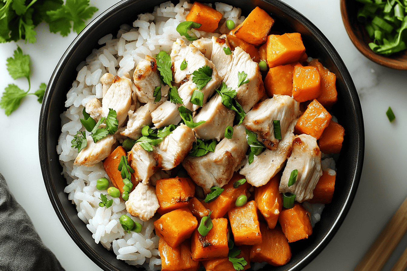 Key Ingredients in Chicken and Sweet Potato Rice Bowl