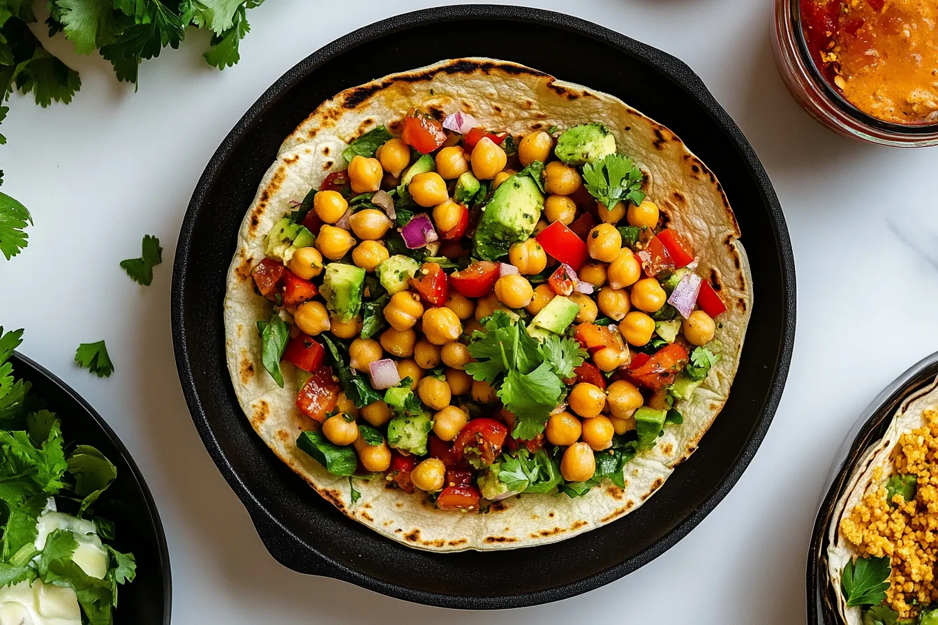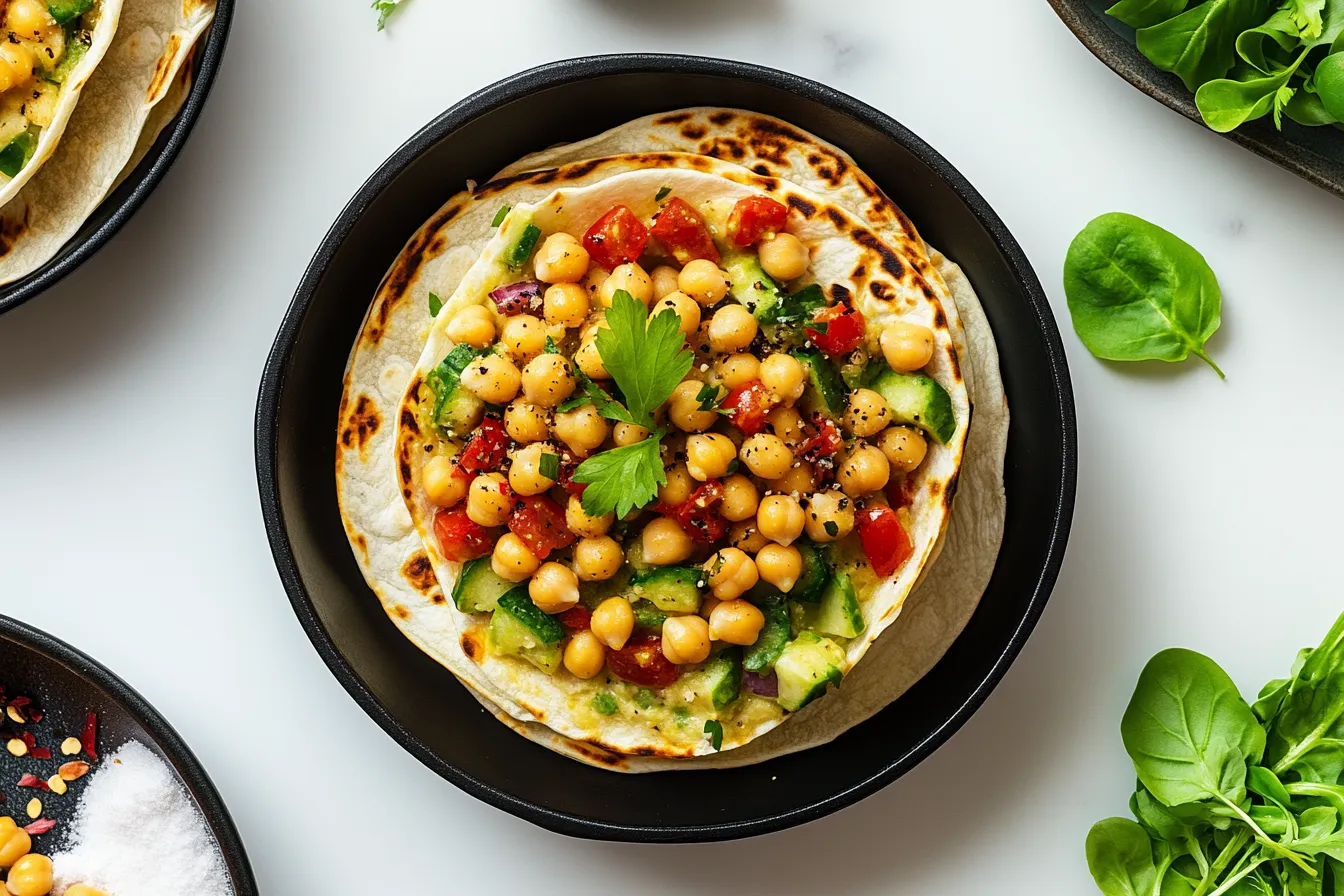 Fresh, vibrant, and packed with flavor, Chickpea Salad Wraps combine crunchy veggies, creamy chickpeas, and a zesty dressing, all wrapped in a soft, wholesome tortilla. Each bite is a perfect balance of textures and bold, tangy goodness!