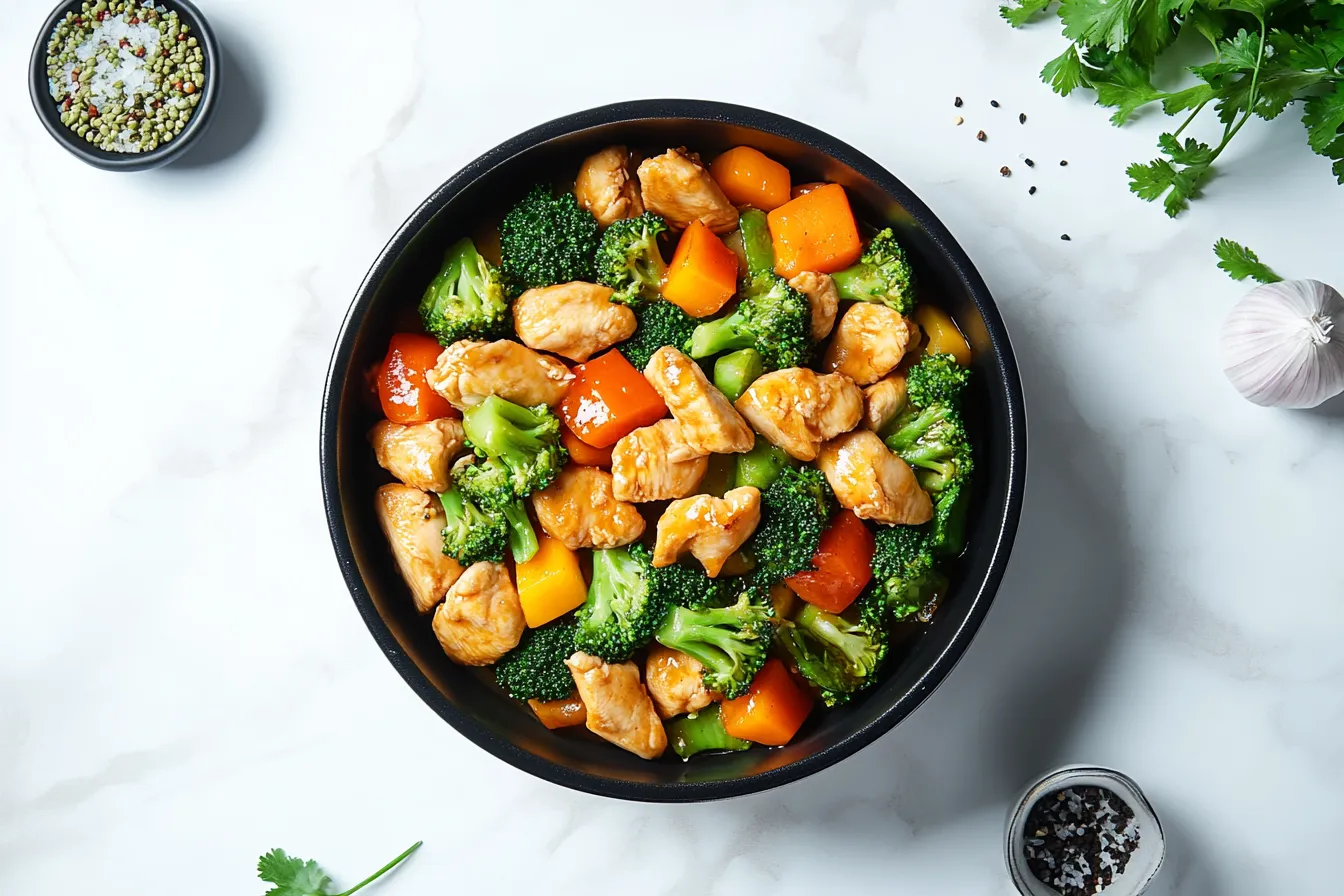 Tender chicken, crisp broccoli, and a savory, tangy sauce come together in this mouthwatering stir-fry. Each bite bursts with umami flavors, perfectly balancing the freshness of the veggies and the richness of the sauce. A satisfying, vibrant dish!
