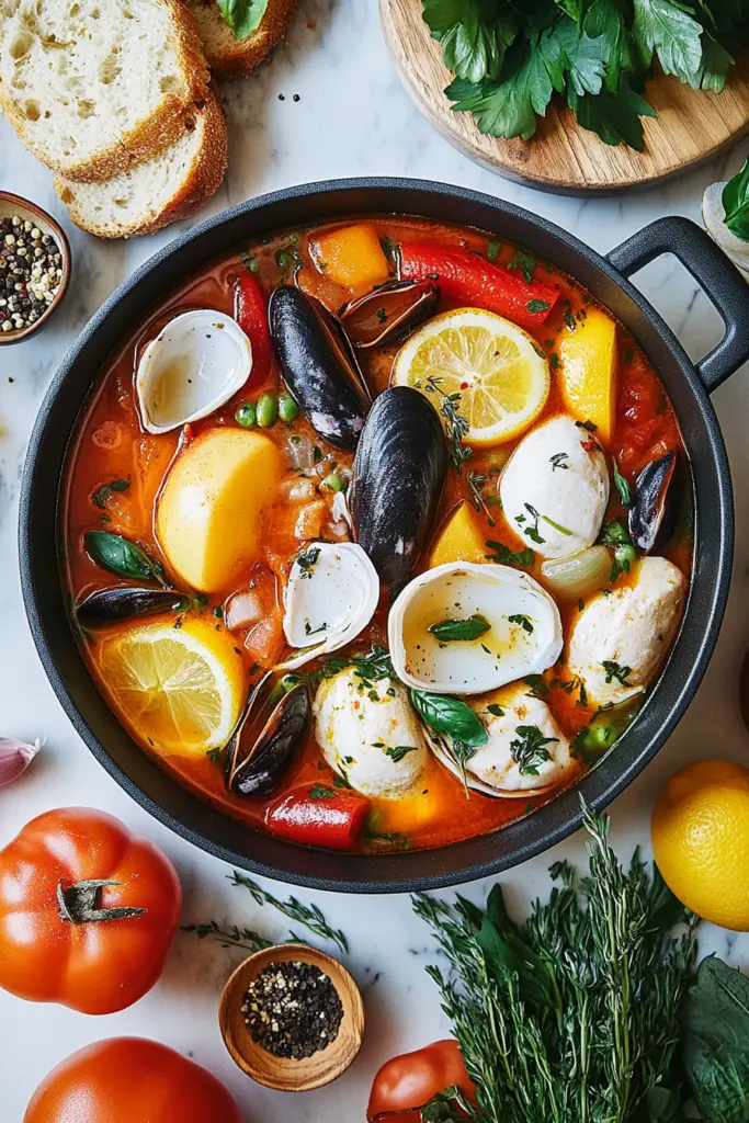 - Fish or Vegetable Stock: A flavorful liquid base that intensifies the seafood flavors and ensures a well-rounded, savory broth.
