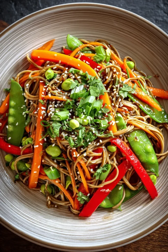 - Layered Platter: For a family-style setup, layer the noodles at the bottom of a large platter, top with the dressed vegetables, and finish with protein. It looks stunning and makes serving a breeze—let everyone dive in!