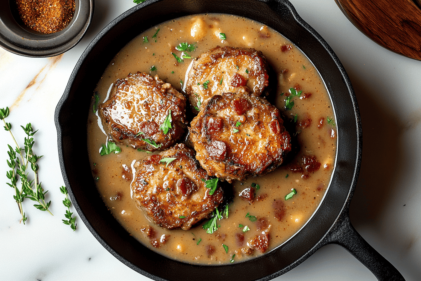 And there you have it – the mouthwatering recipe for Country Fried Pork Chops with Bacon Gravy! The perfect combination of crispy pork chops, creamy gravy, and smoky bacon flavors all come together to create a dish that’s sure to become a family favorite. Whether you’re craving a comforting meal on a chilly evening or looking to impress guests with a taste of Southern hospitality, this recipe has got you covered.