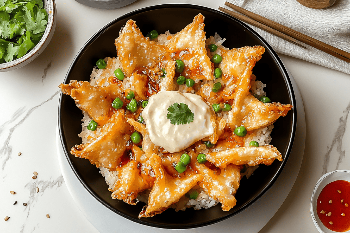 Indulge in the delightful flavors and textures of your freshly made Crab Rangoon for a truly satisfying culinary experience.