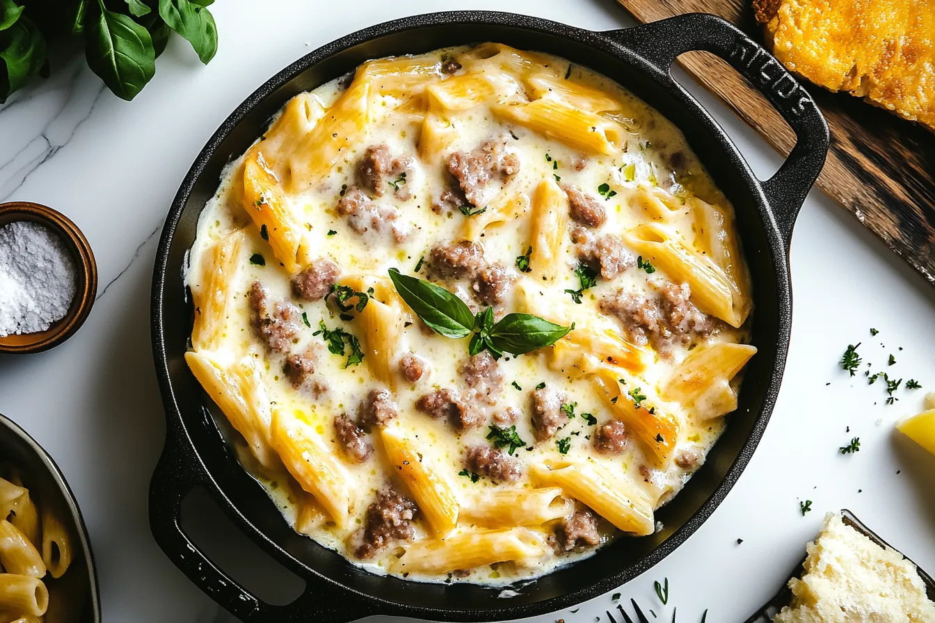 How to Make Creamy Beef Sausage Alfredo Rigatoni