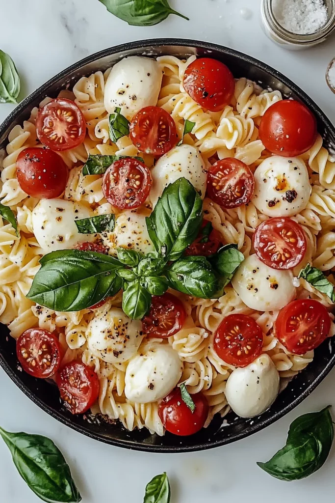 A creamy, tangy twist on the classic Caprese! Tender pasta, fresh tomatoes, basil, and creamy mozzarella are tossed in a velvety dressing that perfectly balances richness and freshness, making every bite irresistible. Perfect for any occasion!