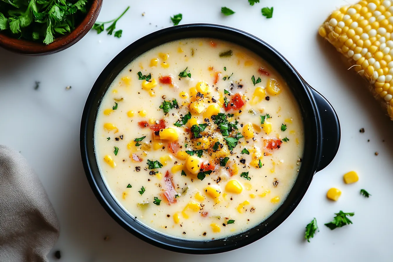 This creamy corn chowder is a warm hug in a bowl, with sweet, tender corn kernels swimming in a velvety, rich broth. A hint of smoky bacon and savory herbs add depth, making every spoonful comforting and satisfying. Perfect for cozy days!