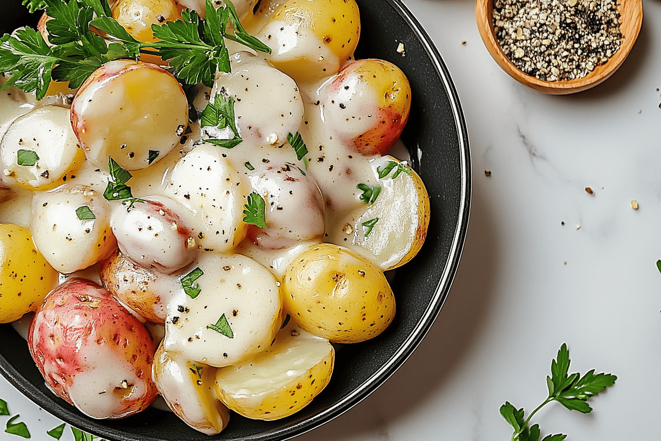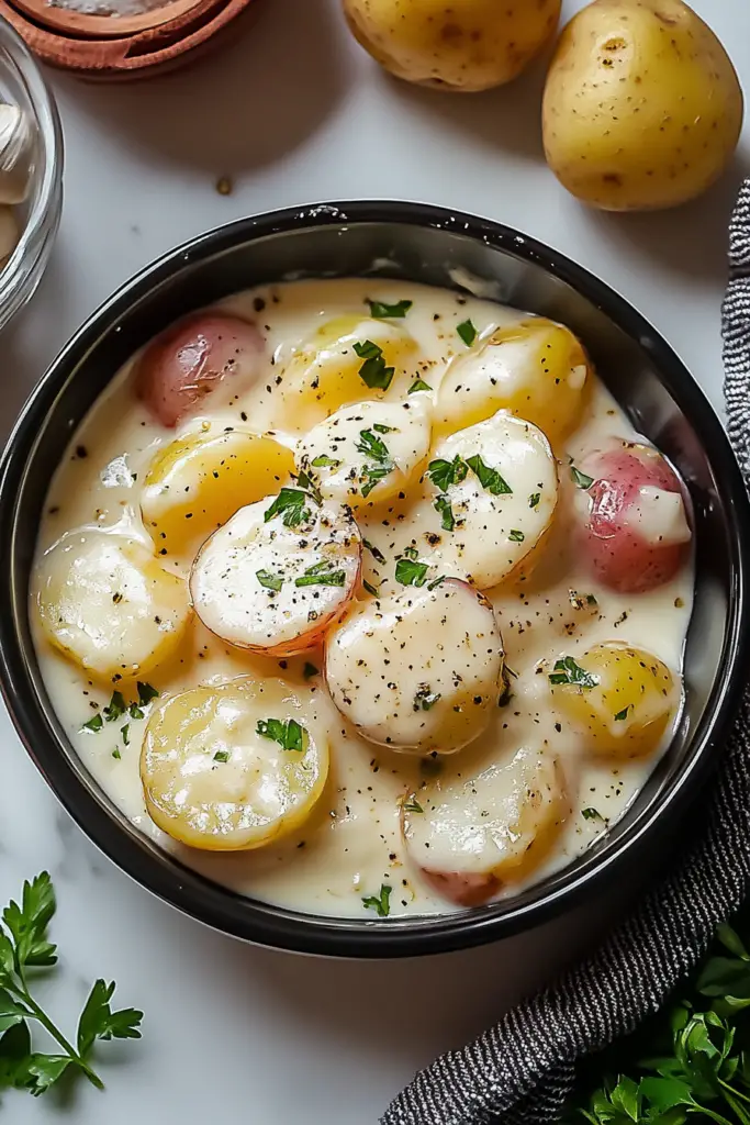 Imagine tender, buttery potatoes coated in a luscious, velvety creamy garlic sauce that whispers hints of savory garlic with every bite. An irresistible dish that promises comfort and satisfaction in every forkful. Treat your taste buds to a creamy symphony of flavors!