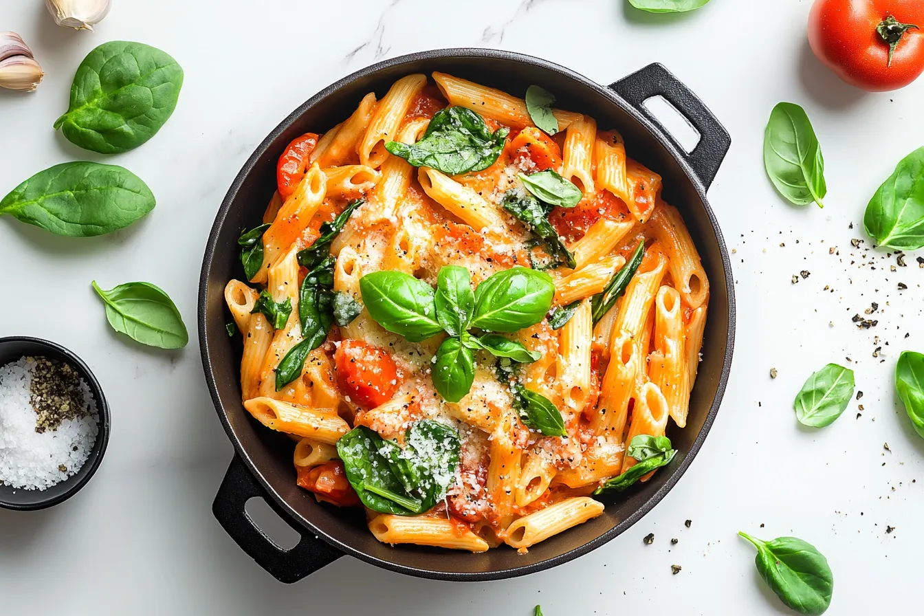 In this creamy tomato and spinach pasta, each ingredient plays a crucial role in building the perfect balance of flavors and textures. From the pasta that forms the comforting base to the fresh basil that adds a touch of brightness at the end, these simple ingredients come together to create a dish that’s bursting with flavor.