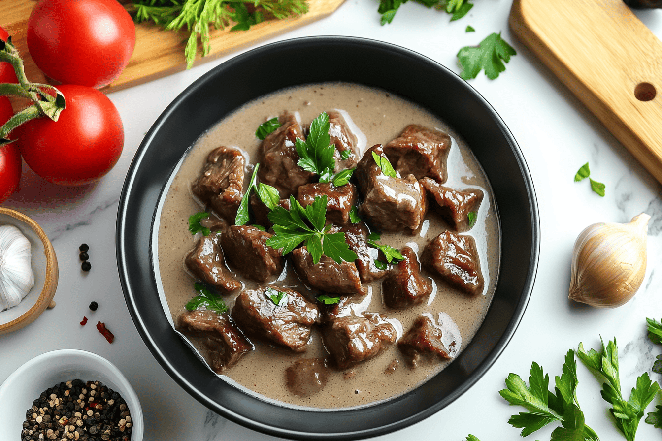 Tender beef tips slow-cooked to perfection in a rich, savory gravy. Each bite is a burst of comfort and flavor, making it the ultimate hearty and satisfying meal. Give your taste buds a treat with this no-fuss, melt-in-your-mouth dish!