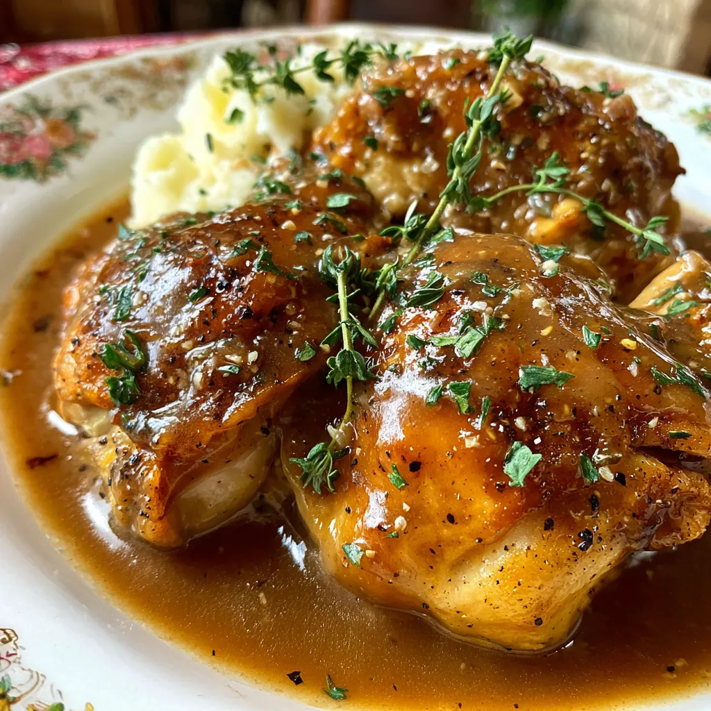 A: This chicken and gravy pairs wonderfully with mashed potatoes, rice, egg noodles, or even cauliflower rice. For a lighter option, serve over steamed vegetables or a bed of wilted spinach to soak up the gravy.