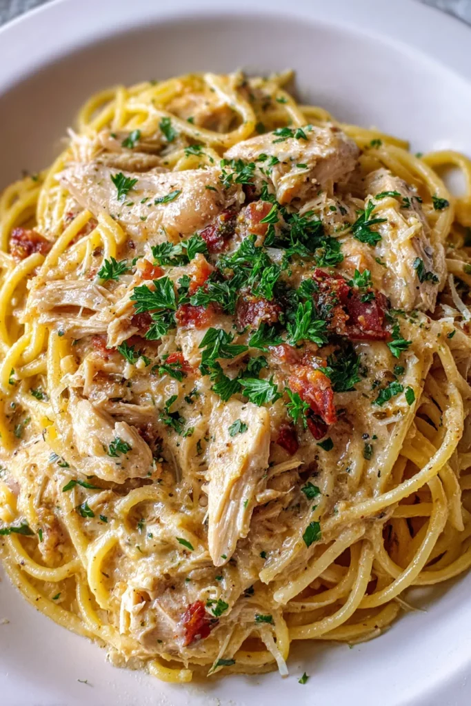 Slow cooking has never been more satisfying. Follow these detailed steps to achieve tender chicken, creamy sauce, and perfectly combined spaghetti in one go.