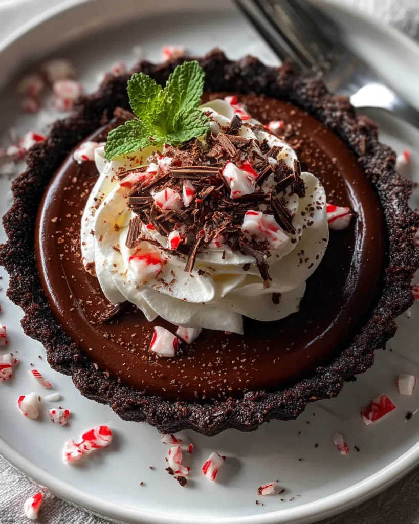 This Dark Chocolate Peppermint Mousse Tart brings together the bold intensity of high-quality dark chocolate and the refreshing lift of peppermint in a dessert that’s both easy to make and stunning to serve. Starting with a buttery chocolate cookie crust and culminating in layers of airy, mint-kissed mousse, every forkful feels like a celebration. The combination of soft peaks, stiff peaks, and just the right chilling time guarantees a texture that wows, while the crushed peppermint garnish adds a festive crunch. Whether you’re baking for the holidays or simply craving something decadent, this tart delivers show-stopping beauty with every slice. Feel free to print this recipe and save it in your favorite binder—trust me, you’ll want to come back to it again and again. And if you ever need a quick idea swap, the notes on experimenting with different extracts or making a gluten-free version are right there to guide you.