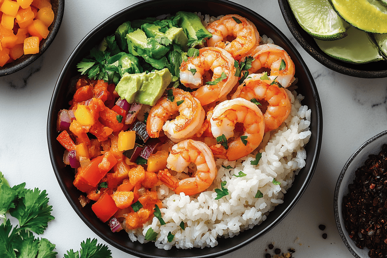 There you have it, fellow kitchen adventurers – the recipe for a deliciously vibrant Fiesta Shrimp Rice Bowl that’s bursting with flavor and color! From the succulent shrimp marinated in zesty spices to the fluffy rice infused with cilantro and lime, this bowl is a celebration on a plate.