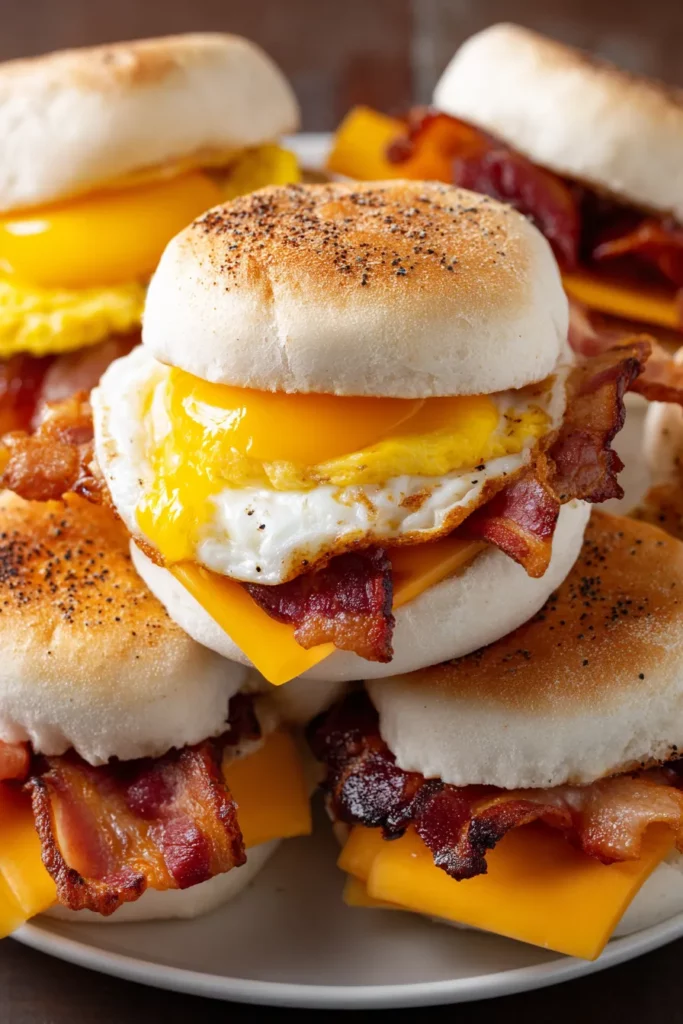 Start your day right with these hearty breakfast sandwiches, loaded with fluffy eggs, melty cheese, and your choice of savory protein. Perfect for meal prep!