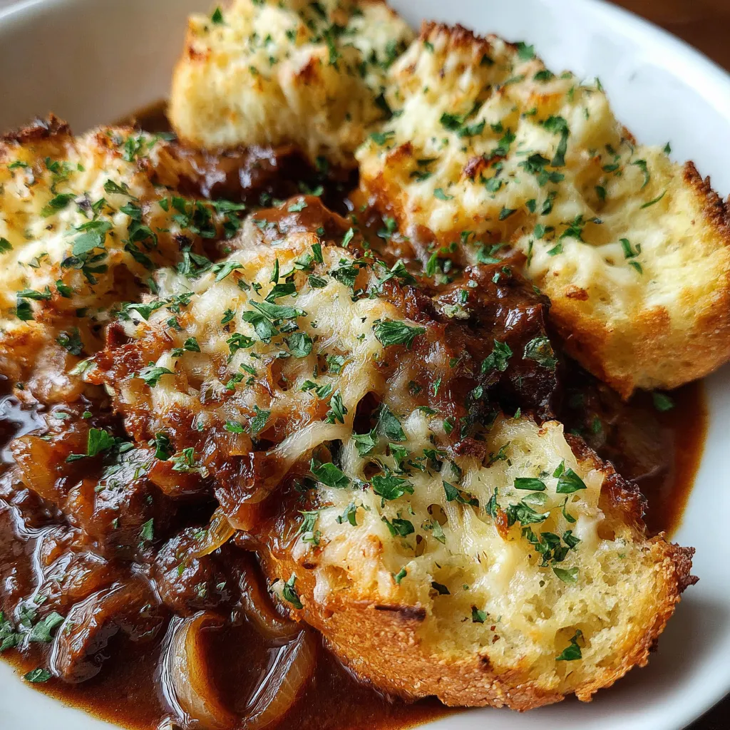 - Crusty Garlic Bread: Serve alongside extra garlic-infused bread slices for dipping into the savory broth and melted cheese.