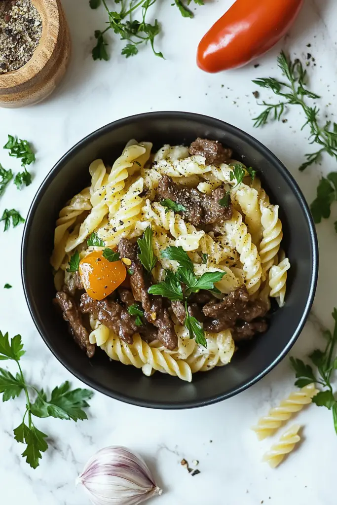 - Beef Broth: This savory liquid enhances the meaty flavor of the dish, creating a luscious sauce that coats every strand of pasta with deliciousness.