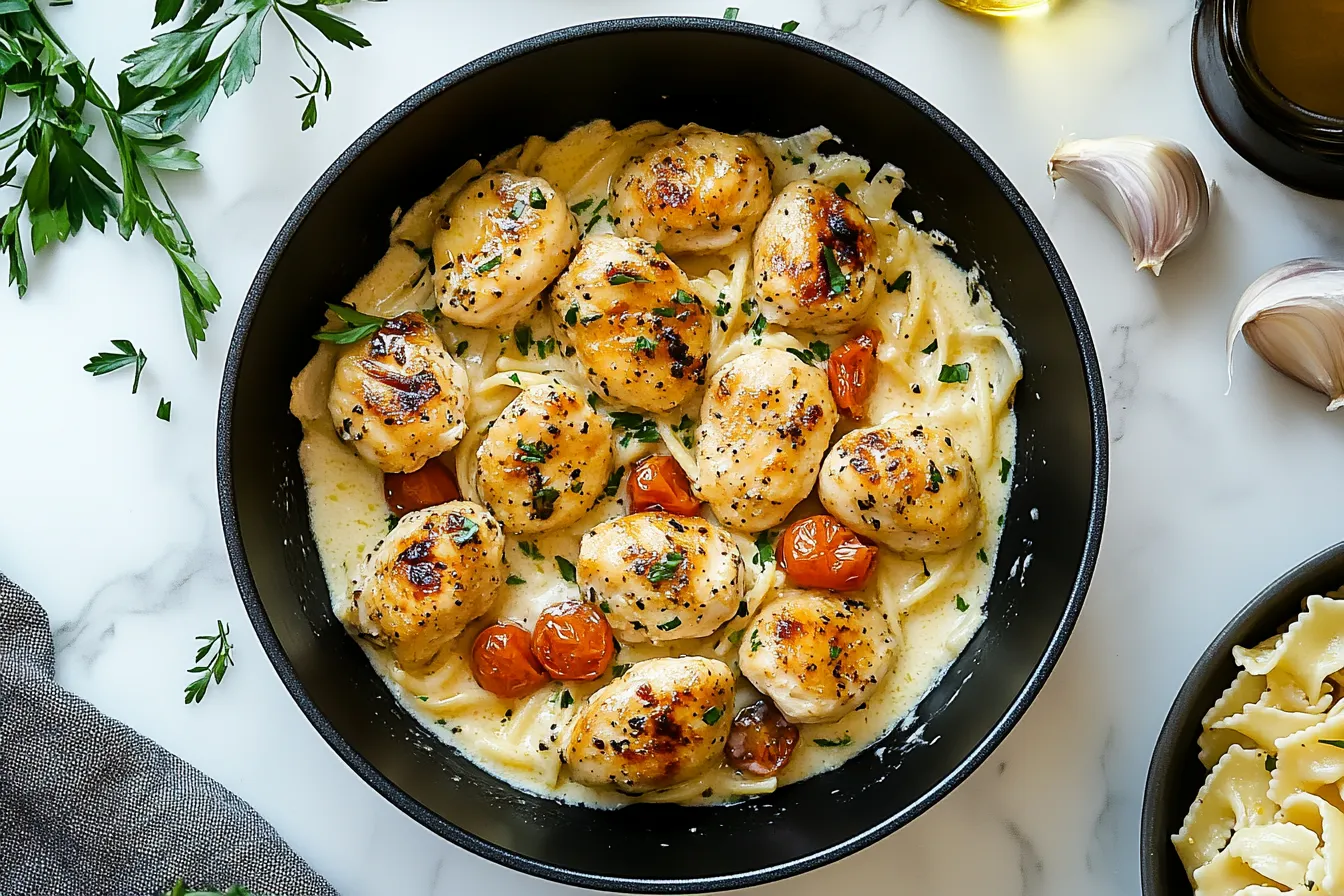 How to Make Garlic Butter Chicken Bites with Savory Creamy Parmesan Pasta