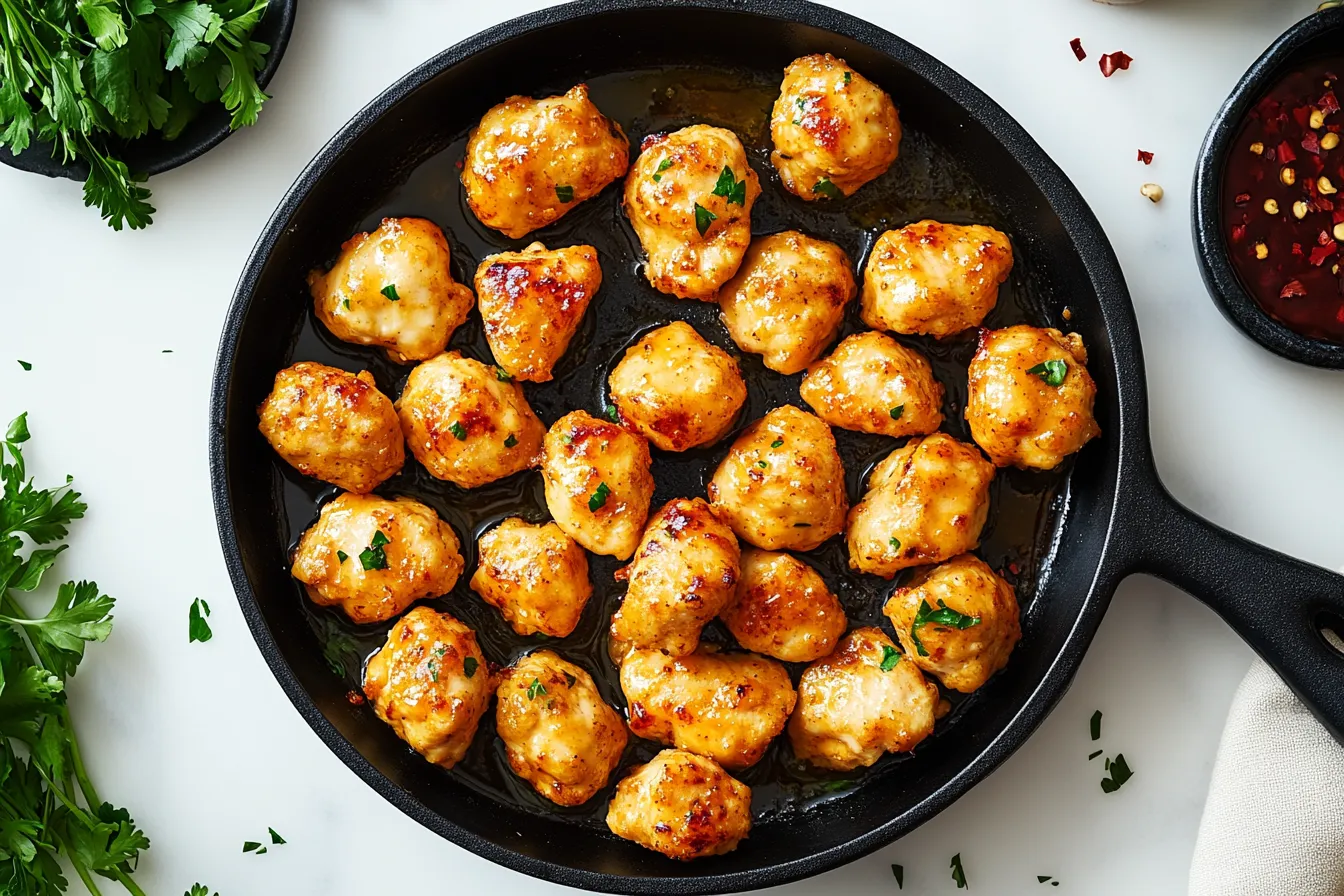 Tender, juicy chicken bites bathed in a rich, golden garlic butter sauce that’s bursting with savory, aromatic flavors. Each bite is perfectly seasoned with hints of garlic, herbs, and a touch of decadence—irresistibly mouthwatering!