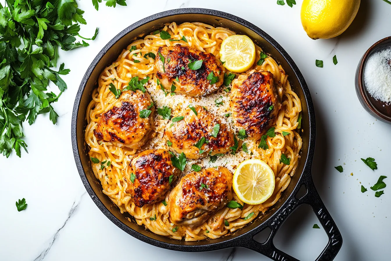 And don’t even get me started on the lemon Parmesan pasta. The tangy brightness of the lemon perfectly balances the richness of the butter, and that Parmesan? It adds just the right amount of salty creaminess that you can’t get enough of. The pasta soaks up all that delicious sauce, making every bite a little piece of heaven. When you bring the two together—garlic butter chicken and that decadent pasta—it’s like a match made in culinary heaven. Whether you’re making this dish for a cozy weeknight dinner or impressing guests at a dinner party, it’s guaranteed to be a crowd-pleaser. The best part? It’s simple to make but feels like something special, like you’ve just discovered a little gem in the kitchen.