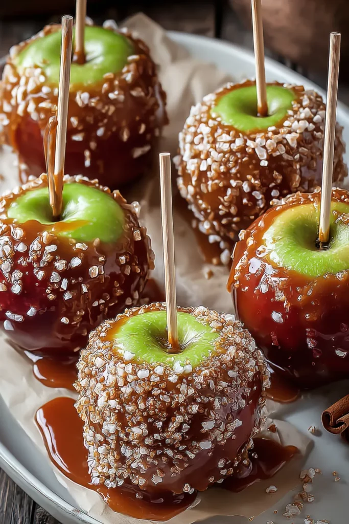 These Gourmet Salted Caramel Coated Apples blend tartness with rich, buttery caramel, creating a perfect bite of sweet and salty textures with every crunch.
