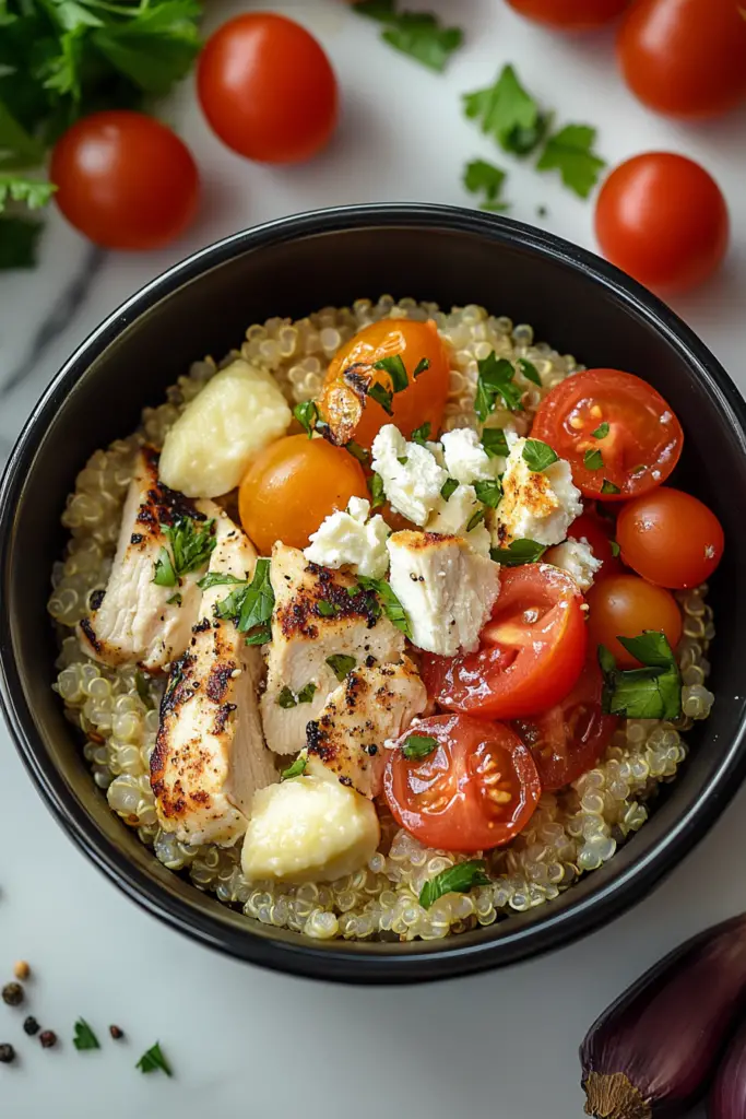 Whether you’re looking for a quick weeknight dinner, a picnic-perfect meal, or a show-stopping addition to your next gathering, these Greek Chicken Quinoa Bowls are sure to impress. With their vibrant flavors, wholesome ingredients, and satisfying goodness, they are bound to become a favorite in your recipe repertoire.