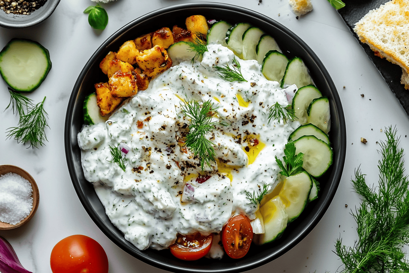 - Greek yogurt: Creamy and tangy, Greek yogurt serves as the base for the luscious tzatziki sauce. Its rich texture and slightly sour flavor complement the marinated chicken beautifully.