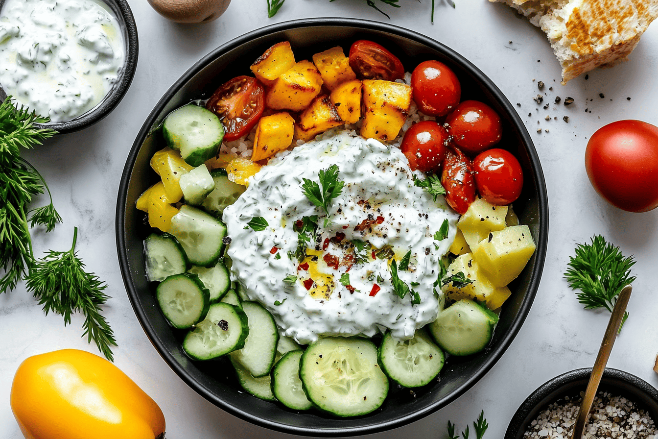 Key Ingredients in Greek Chicken Tzatziki Bowls