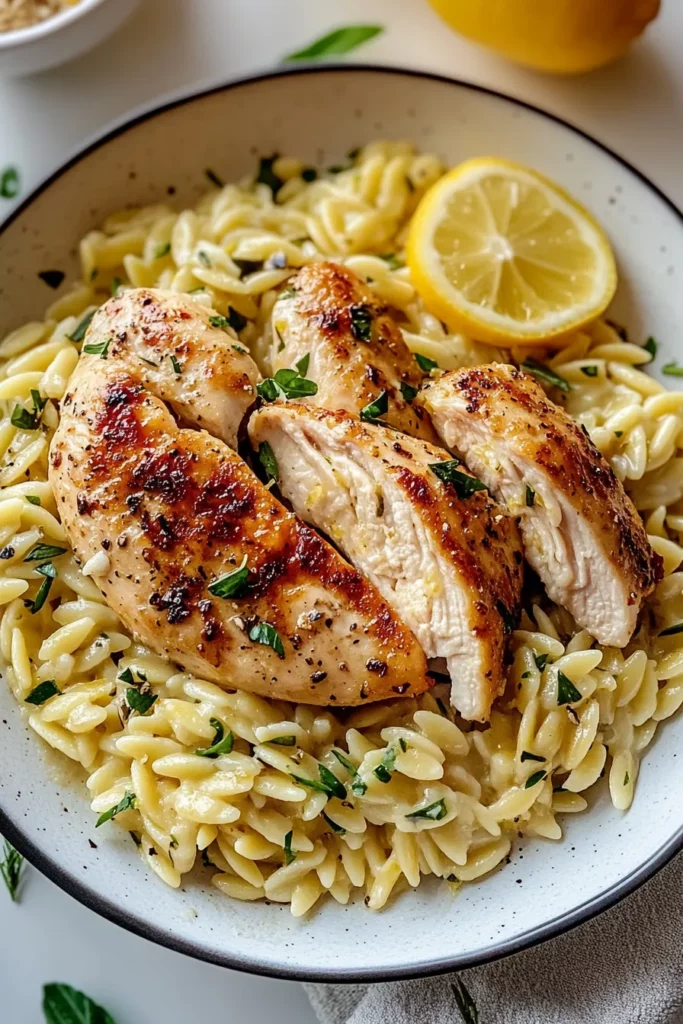 Greek Lemon Chicken and Orzo combines tender, herb-marinated chicken with zesty lemon and garlic flavors. Served over perfectly cooked orzo, it's a bright, savory dish with a touch of Mediterranean magic that’ll leave you craving more!