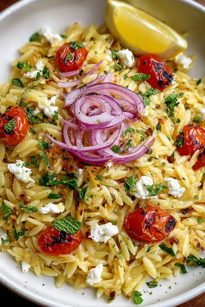 This Greek Lemon Herb Orzo Dinner bursts with freshness from lemon, herbs, and veggies, creating a delightful, comforting meal perfect for any occasion.