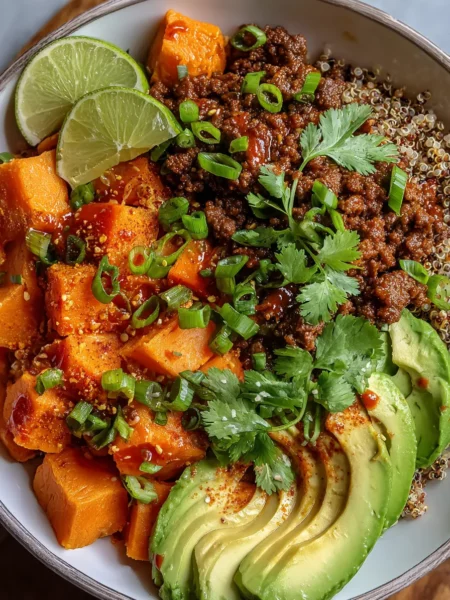 The Greek Meatball Bowl is a vibrant celebration of flavors, where juicy, tender meatballs take center stage. The tzatziki sauce, with its cool, creamy texture, brings a refreshing contrast to the savory meatballs, making each bite feel like a delicious harmony. The rice serves as the perfect base, fluffy and warm, soaking up all the flavorful juices. And then there are the fresh veggies—crisp cucumber, juicy tomatoes, and a sprinkle of red onion—each adding their own burst of color and crunch. Together, these ingredients create a balanced, satisfying meal that’s perfect for lunch, dinner, or even a quick weeknight treat. Every bite feels like a mini celebration of Greek cuisine, with that delightful mix of Mediterranean spices and textures coming together so effortlessly. And don’t be shy—add a little extra tzatziki for dipping. It’s one of those meals where the flavors just keep getting better with every bite.