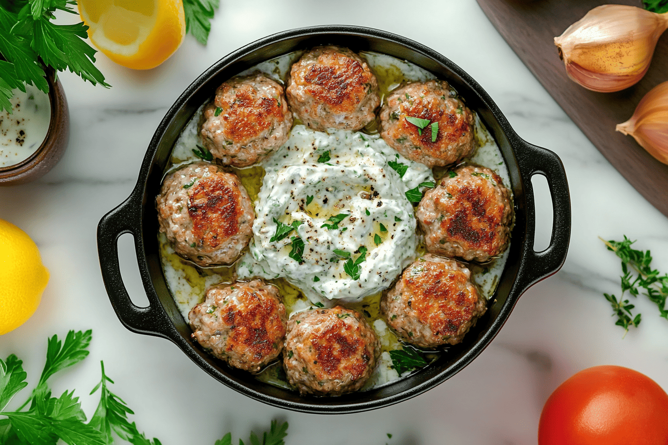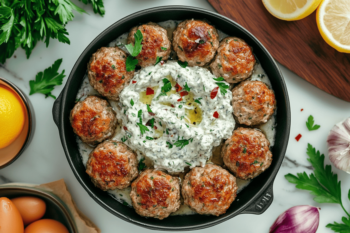 Experience the vibrant flavors of Greece with our Greek Turkey Meatballs with Tzatziki! Succulent turkey meatballs infused with Mediterranean herbs and spices, served with a creamy and tangy tzatziki sauce. A taste of the Mediterranean in every bite!