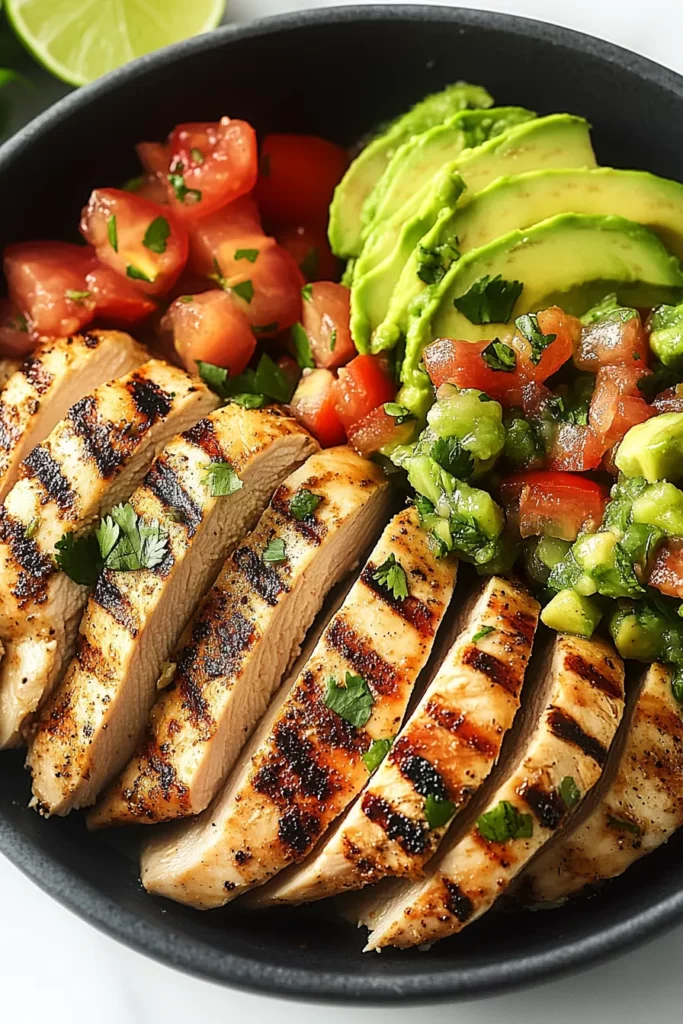 There’s something about the combination of textures too—the chicken’s juicy, slightly crispy exterior paired with the smoothness of the avocado. Each bite is a celebration of simplicity, yet it feels indulgent. If you like a little heat, a dash of jalapeño or a sprinkle of chili flakes in the salsa adds that perfect pop. And if you’re feeling extra adventurous, a side of grilled corn or a light quinoa salad would complete the dish.