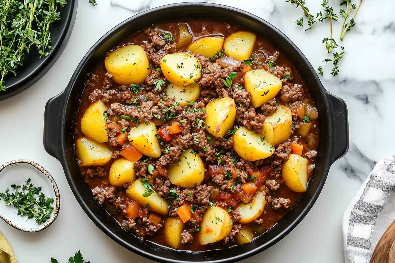 Hearty ground beef and tender potatoes come together in this cozy casserole, baked to perfection with savory seasonings. Each bite is a comforting mix of rich, flavorful meat and creamy potatoes that will warm you from the inside out. Perfect for any day!