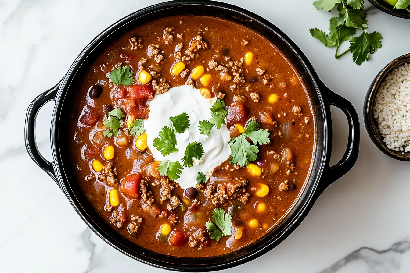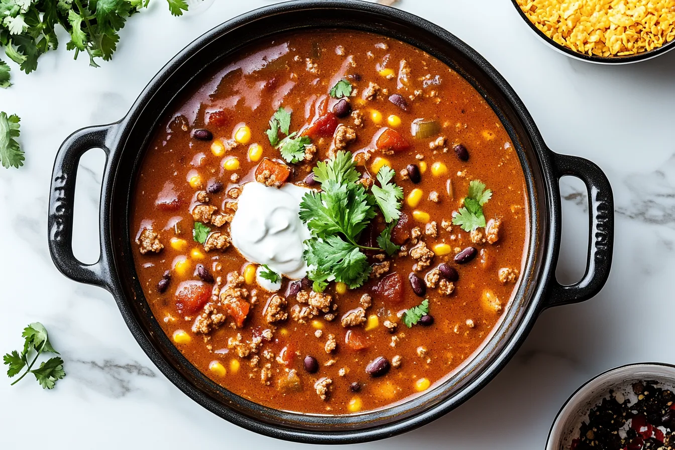 The rich aroma of simmering ground beef combined with the warmth of cumin, chili powder, and garlic fills the kitchen, making it nearly impossible not to sneak a taste. As the broth comes together, it becomes a savory base, cradling all the flavors from the browned beef to the roasted tomatoes and tangy green chilies. With each bite, you get a comforting burst of spice that’s not too overpowering but just enough to keep you coming back for more. The texture is wonderfully satisfying, with the hearty beef mingling perfectly with the tender bits of corn, beans, and a hint of smokiness from the paprika. It’s the kind of soup that wraps you up like a warm blanket, especially on those chilly evenings when you just need something cozy and filling.